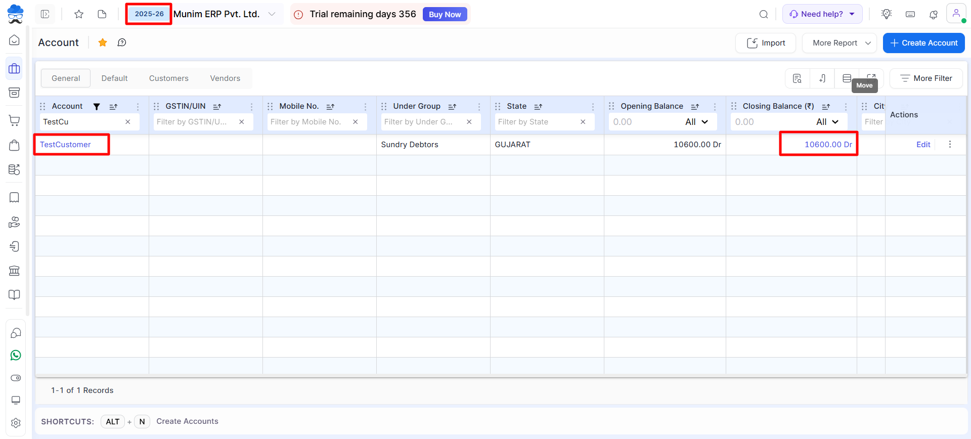 - Step 2: Check the current year‘s opening balance for the Anant Fashion account
