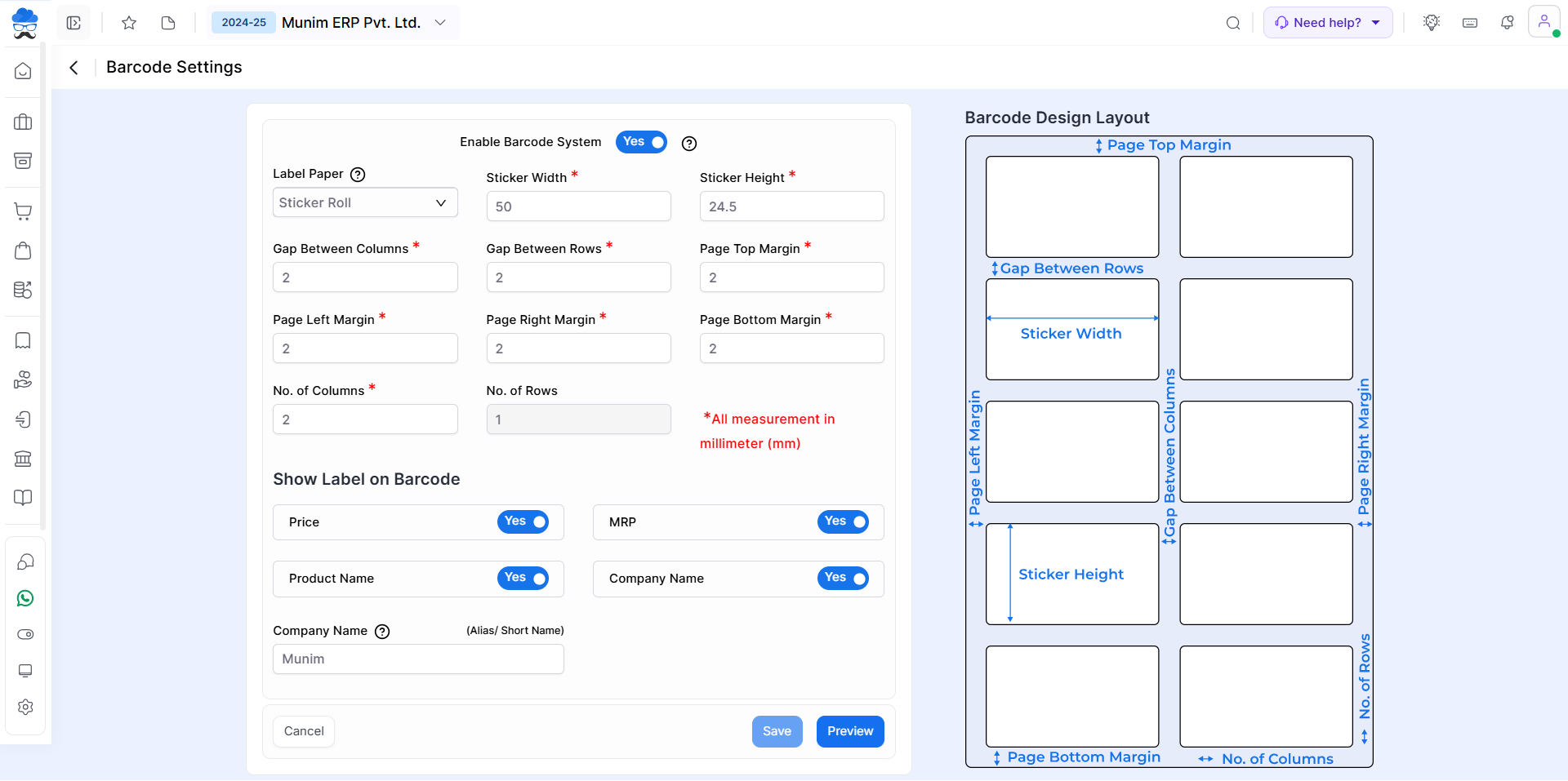 - Check the Label Preview of the barcode sticker while adjusting label settings.