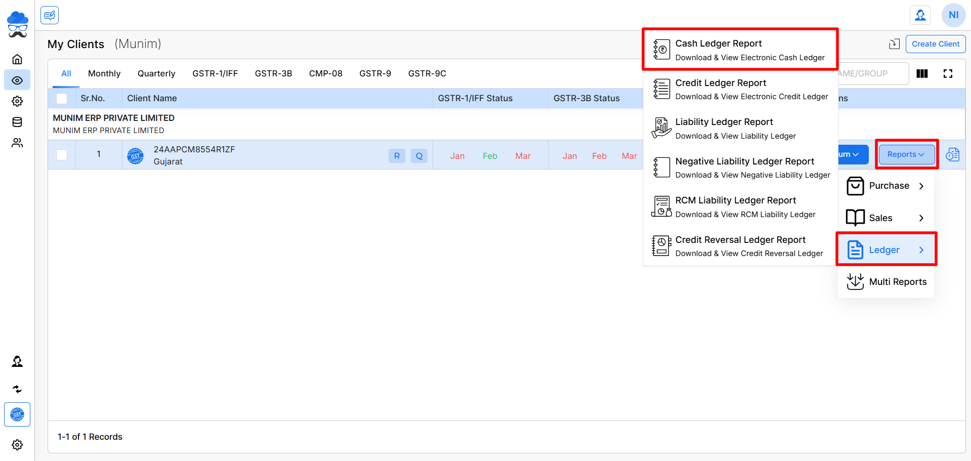 Previously, all ledger reports were available in a single combined module. Now, for better clarity and ease of use, we have separated each ledger report into individual sections.
