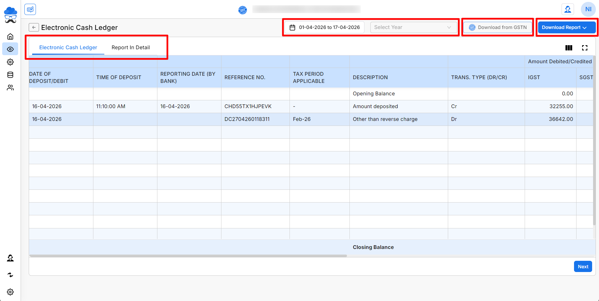 By using the Cash Ledger Report, you can easily track your GST cash balance, verify tax payments, and monitor fund utilization.