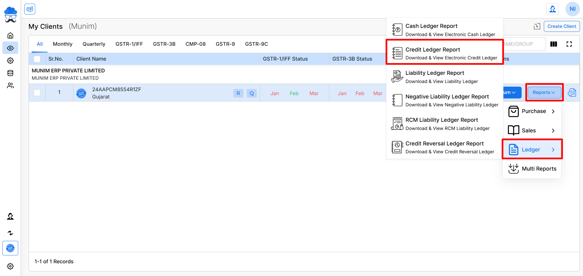 The Credit Ledger Report in Munim GST helps you view details of your Input Tax Credit (ITC), including available, utilized, and remaining credit.