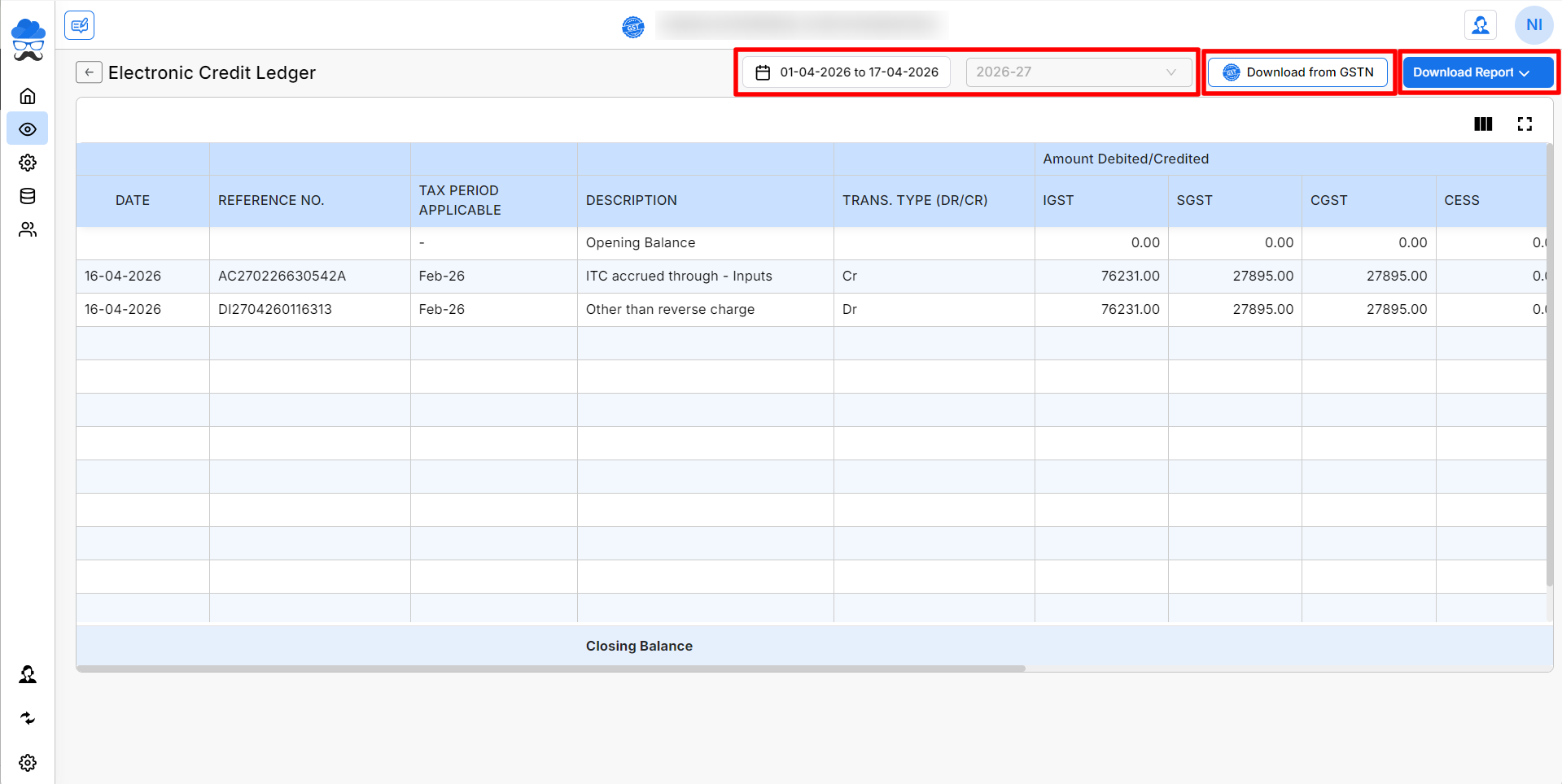 By using the Credit Ledger Report, you can monitor your Input Tax Credit and ensure proper utilization of available credits.
