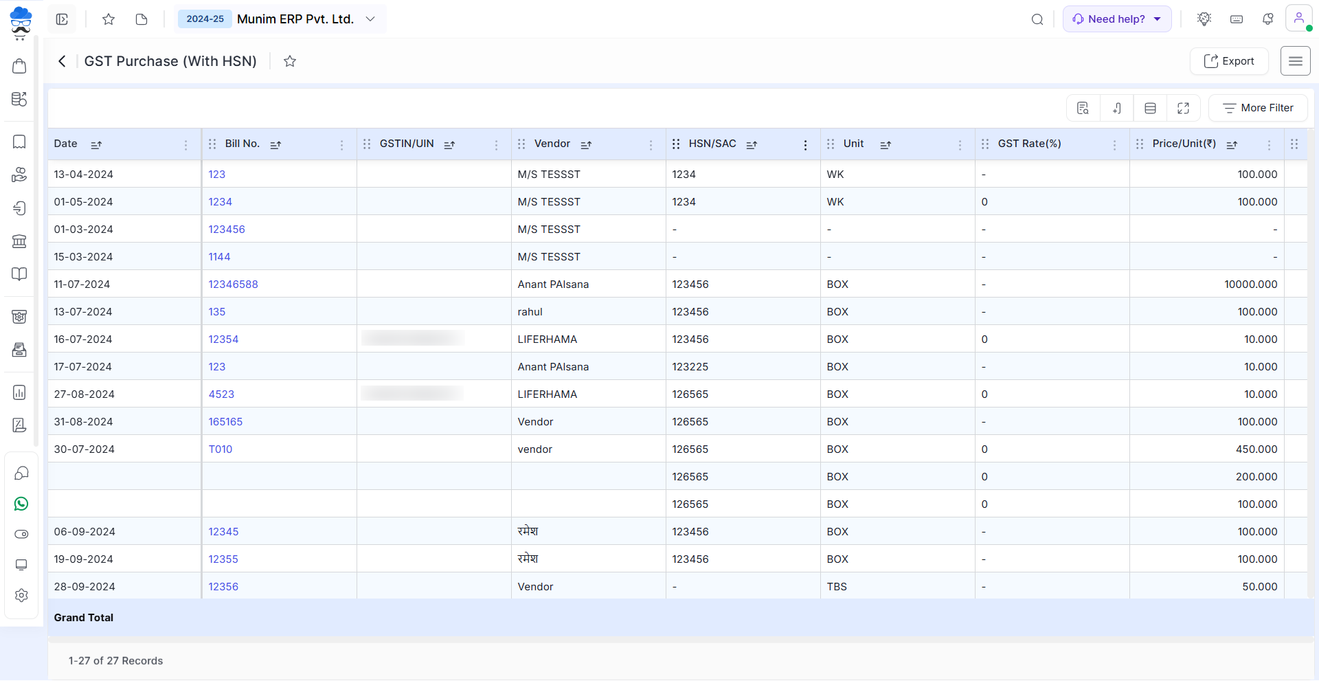 This report is helpful to look at the GST purchase bill with the HSN code and shows a full description of the purchase bill.