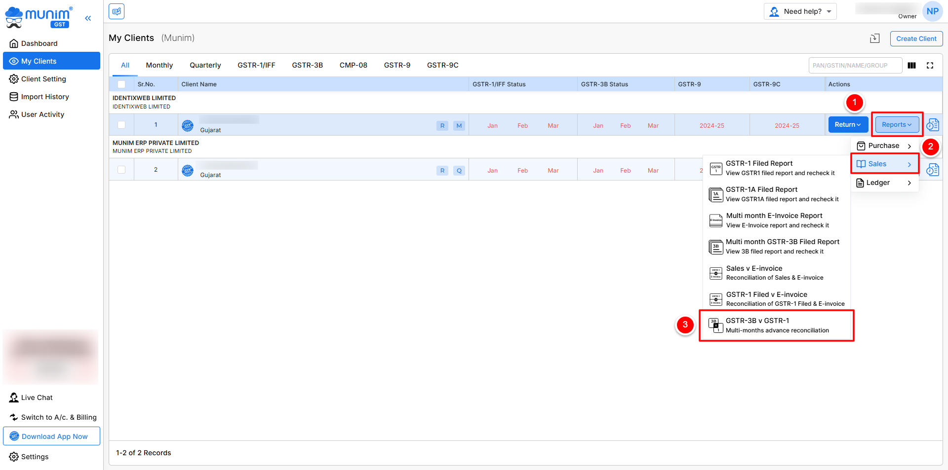 - Log in to Munim GST and go to My Clients.