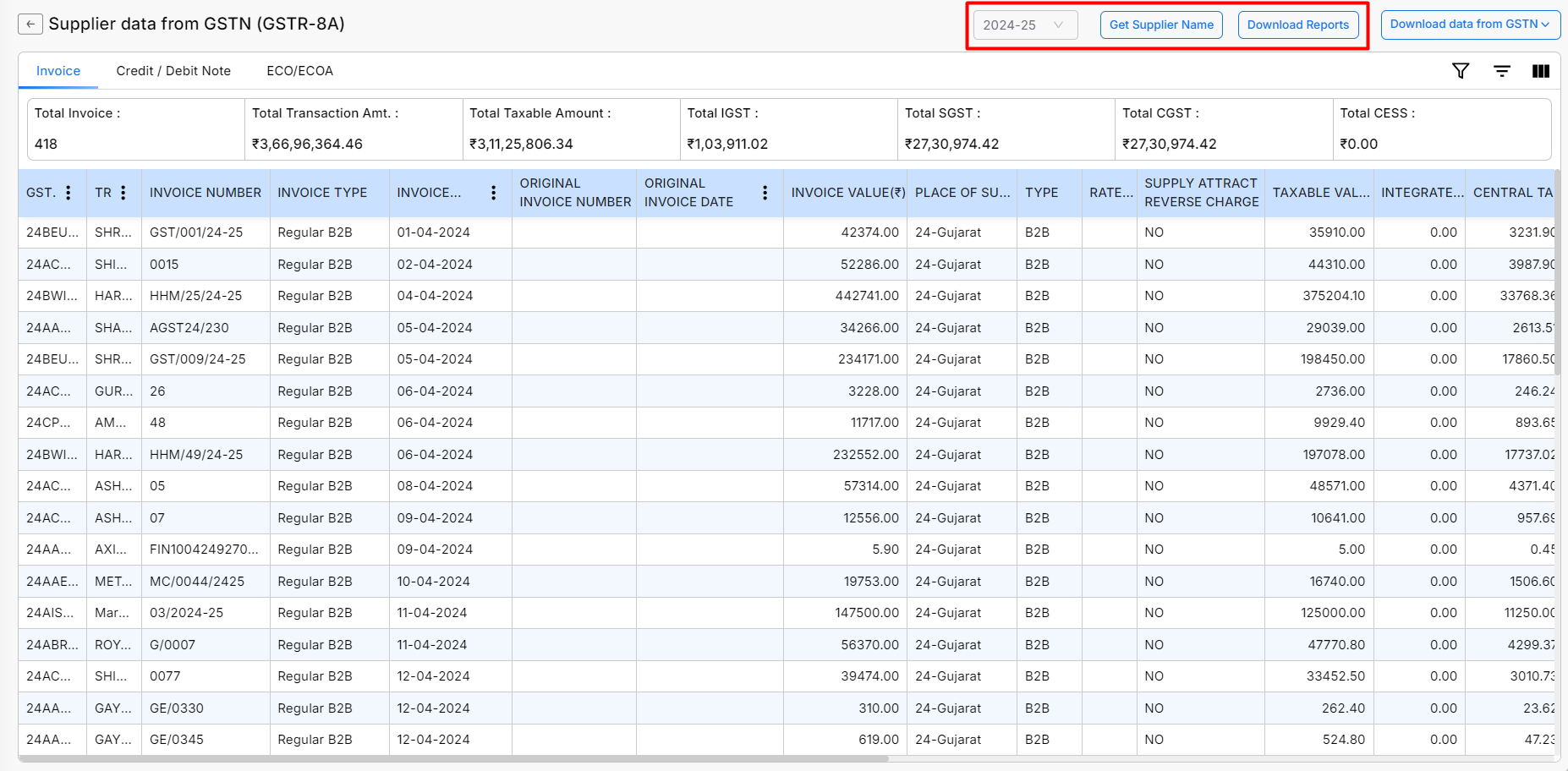 The GSTR-8A Report allows you to download supplier-wise purchase invoice data directly from the GST Portal (GSTN). This data is used for purchase reconciliation and verification of Input Tax Credit (ITC).