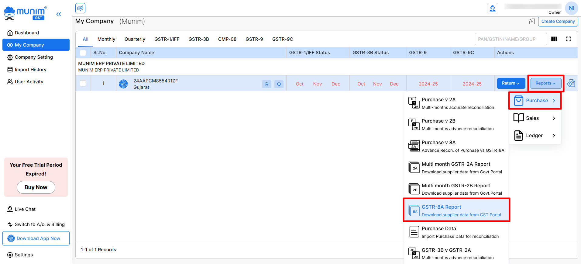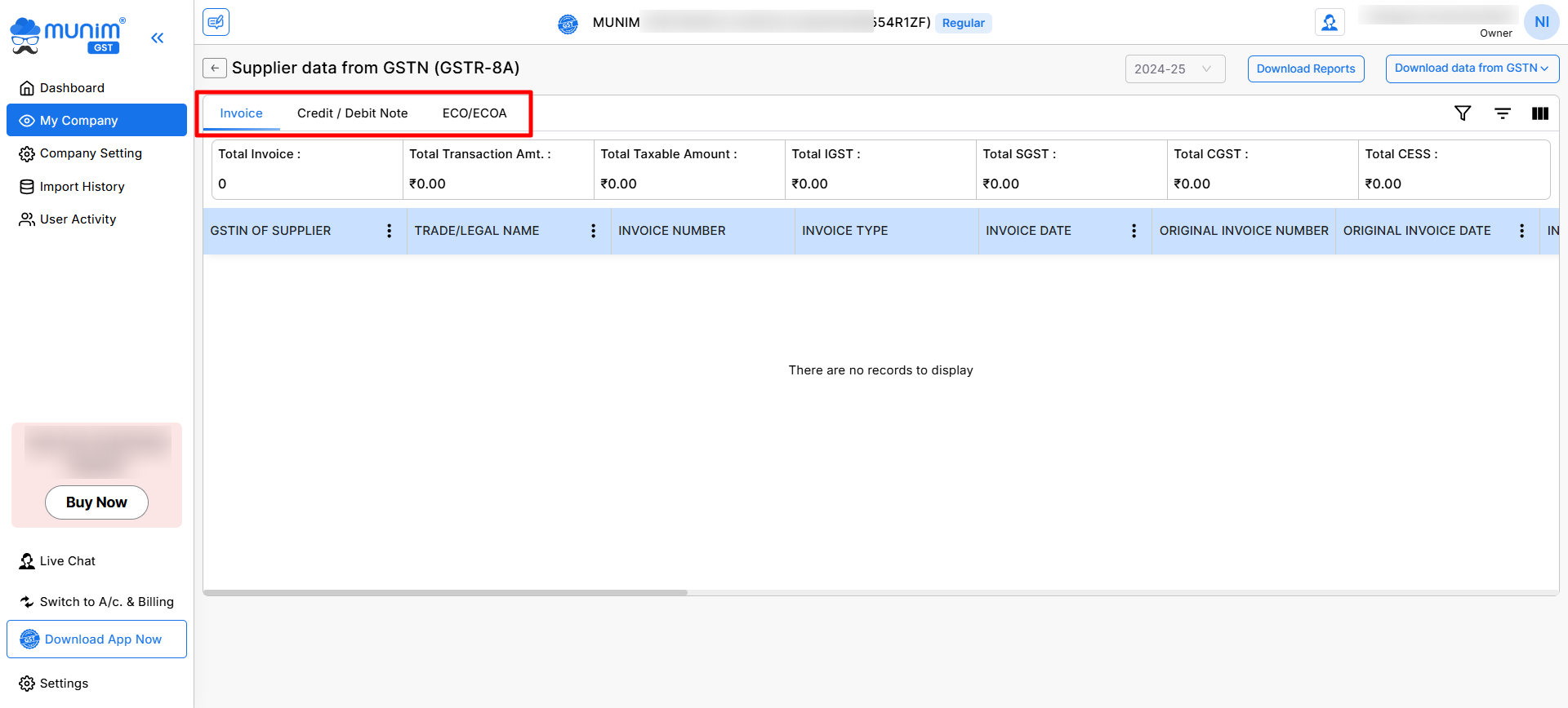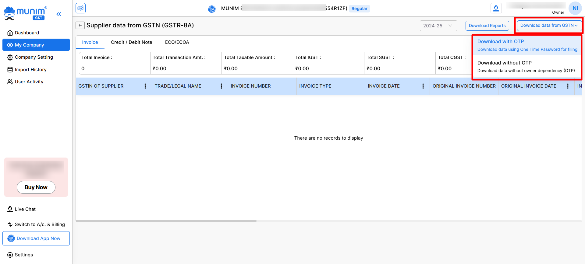 Munim provides two options to download GSTR-8A data from the GST Portal:
