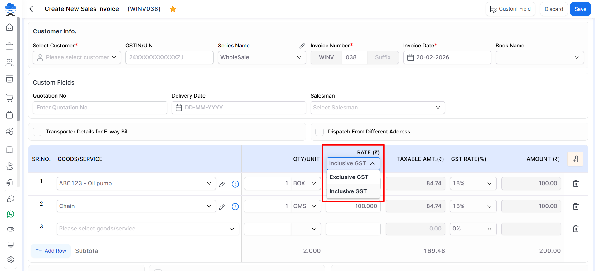- After changing the Item Rate Calculation method, you will be able to see the difference accordingly while creating a Sales Invoice.