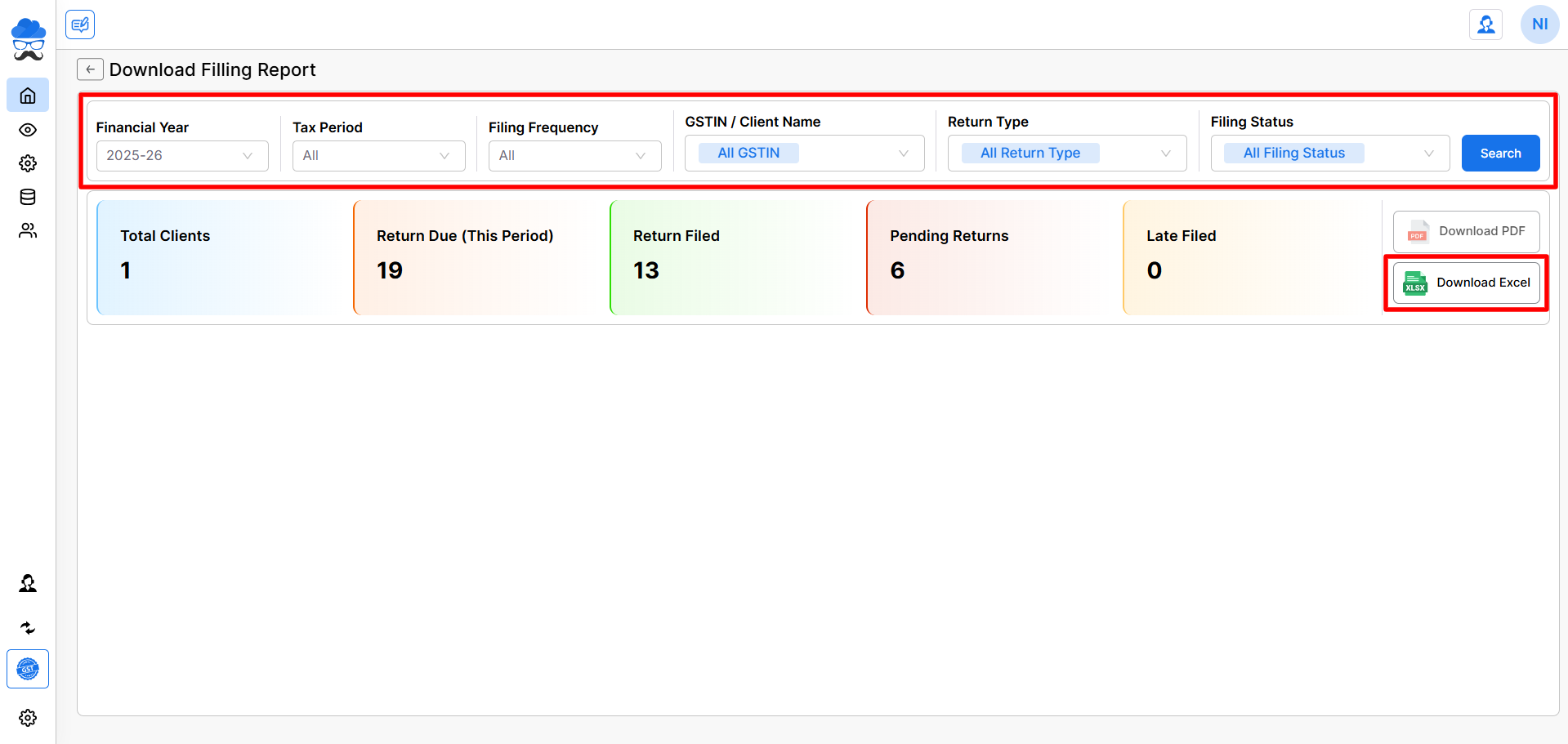 This feature provides a quick, efficient way to monitor GST return Filing Status for companies in one go, ensuring you stay on top of filing deadlines.