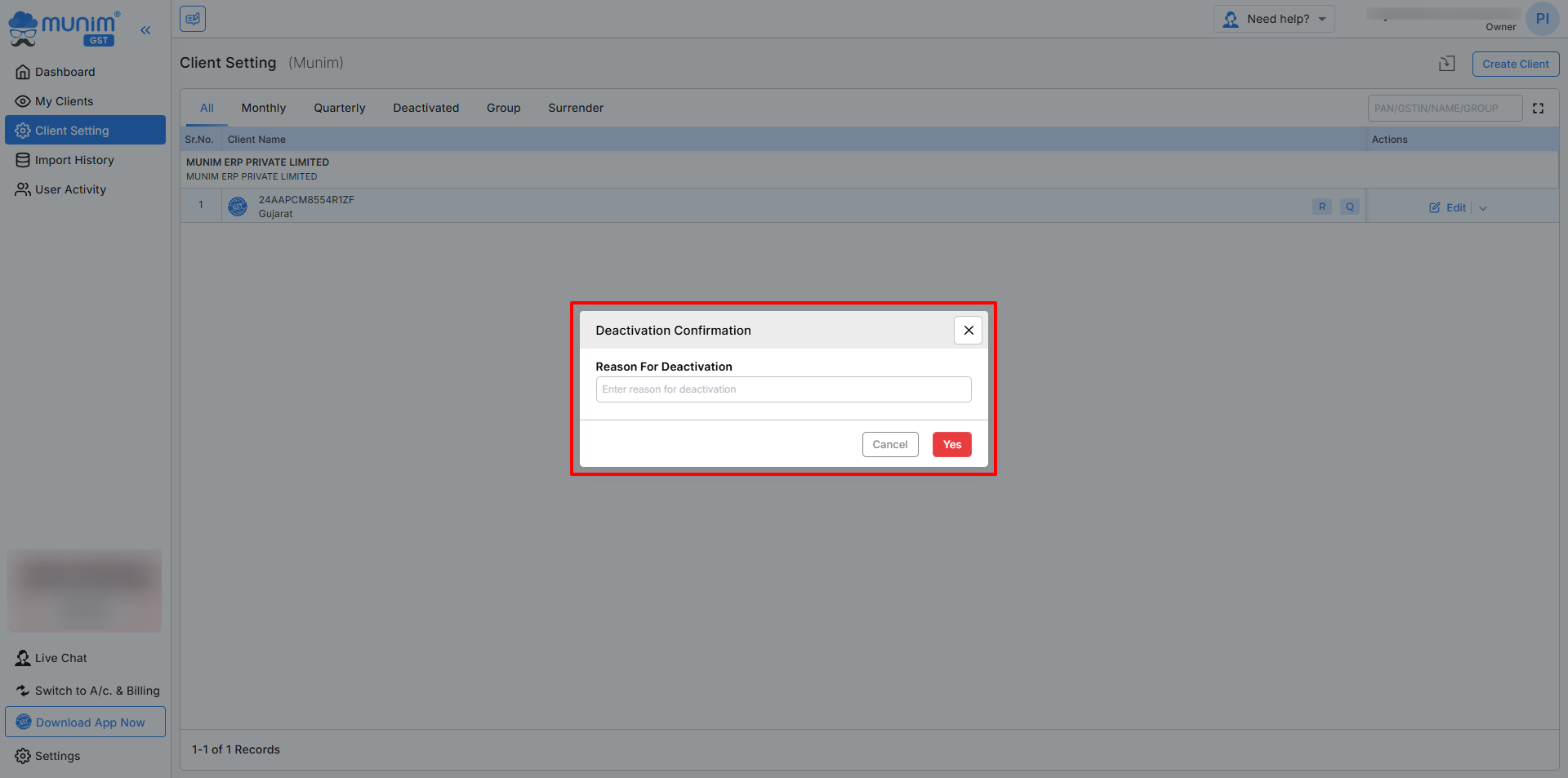 - Once confirmed, the company will be deactivated, and you won’t be able to manage or file returns for this company until it’s reactivated.
