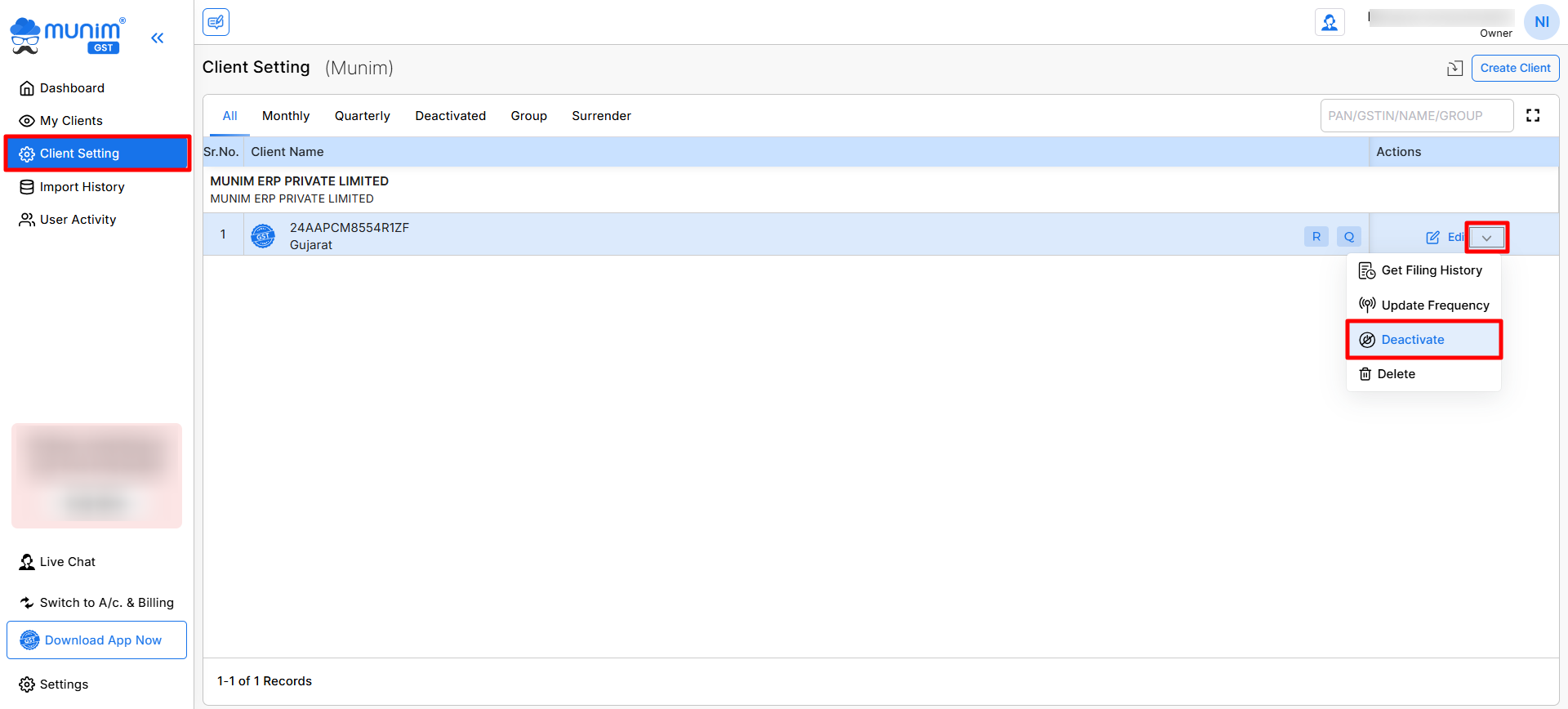- In the drop-down menu, from the options shown, click on Deactivate.