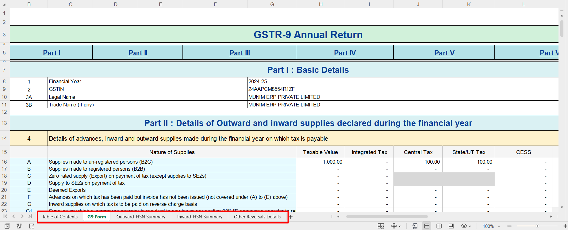 - We have provided a Download Report option at the top right corner, where you can download and check the report in Excel format in two variations: Draft G9 Report and System Generated G9 Report.