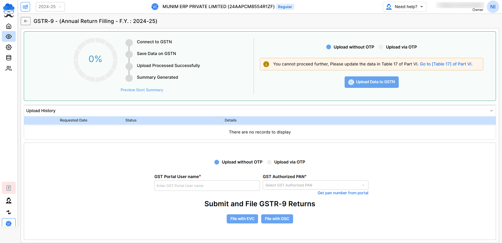 If you encounter any issues during the GSTR-9 filing process or need any help, please get in touch with our Support.