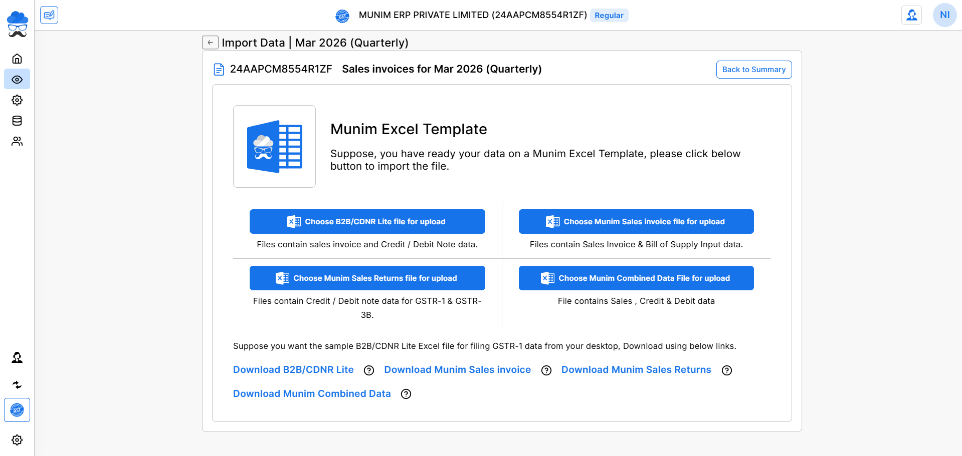 - Connect Munim Accounting for direct data import for return filing. You can check the Detailed helpdesk here: Munim Connector Feature