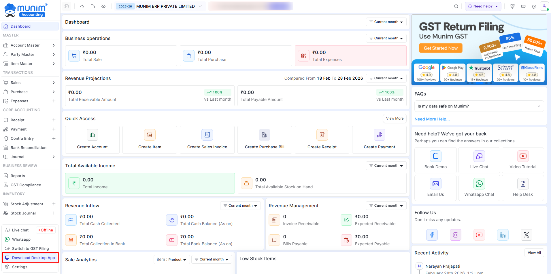 - A shortcut will be created on your desktop: Munim GST Filing