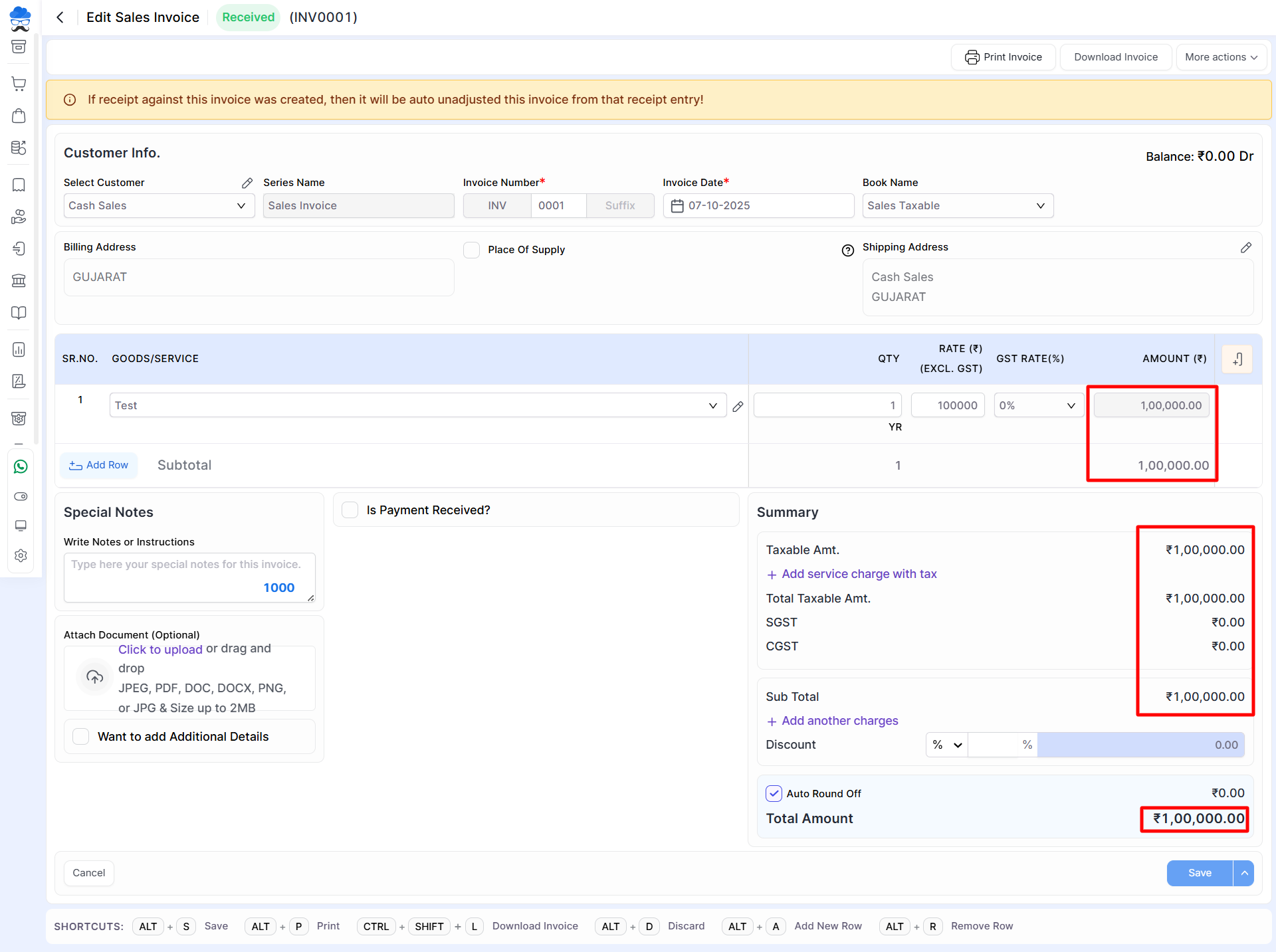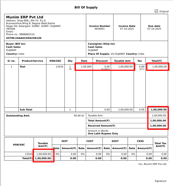 Your numbers will now be displayed using the Indian grouping standard across all invoices, forms, and reports, for example: 1,23,456.78