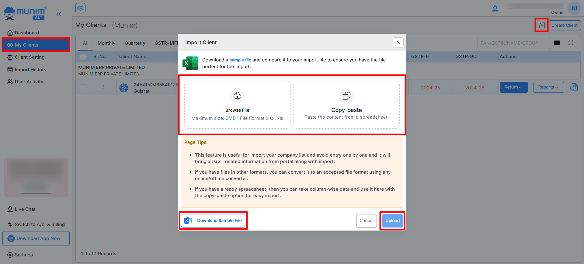 This guide will help you export your client list (with GST numbers and related details) from ClearTax and import it into Munim using an Excel file.
