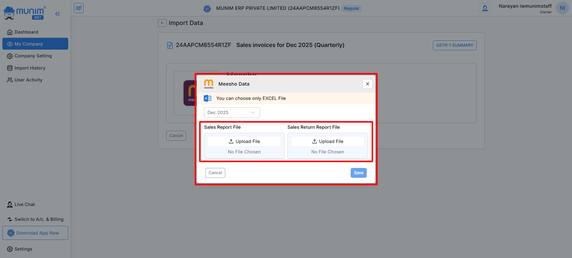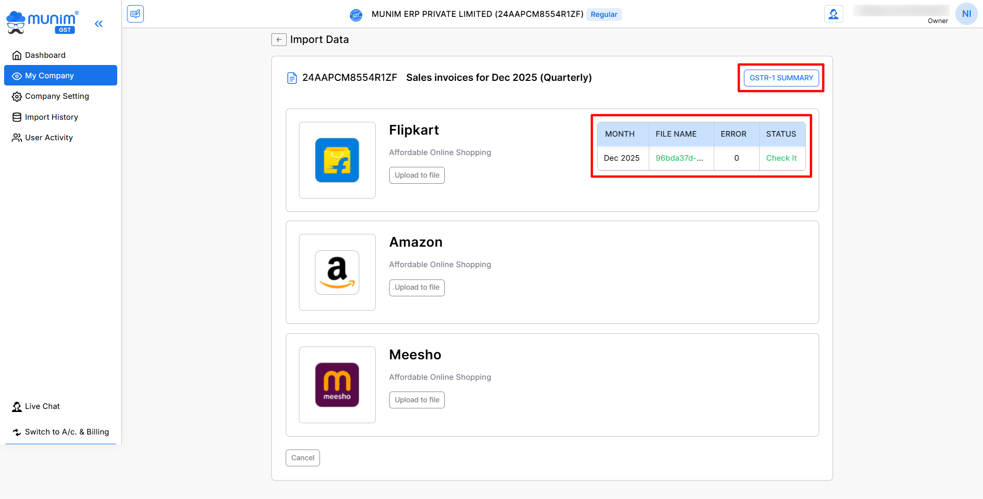 - Once files are uploaded, Munim GST will automatically:
