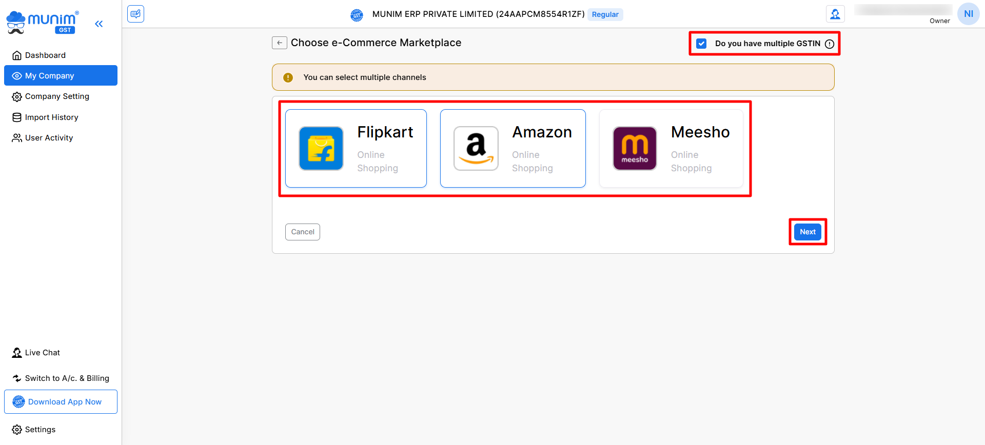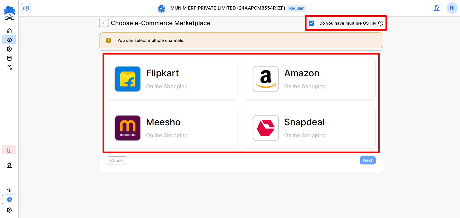 - If your business operates with more than one GSTIN under the same company, enable the option: Do you have multiple GSTIN?