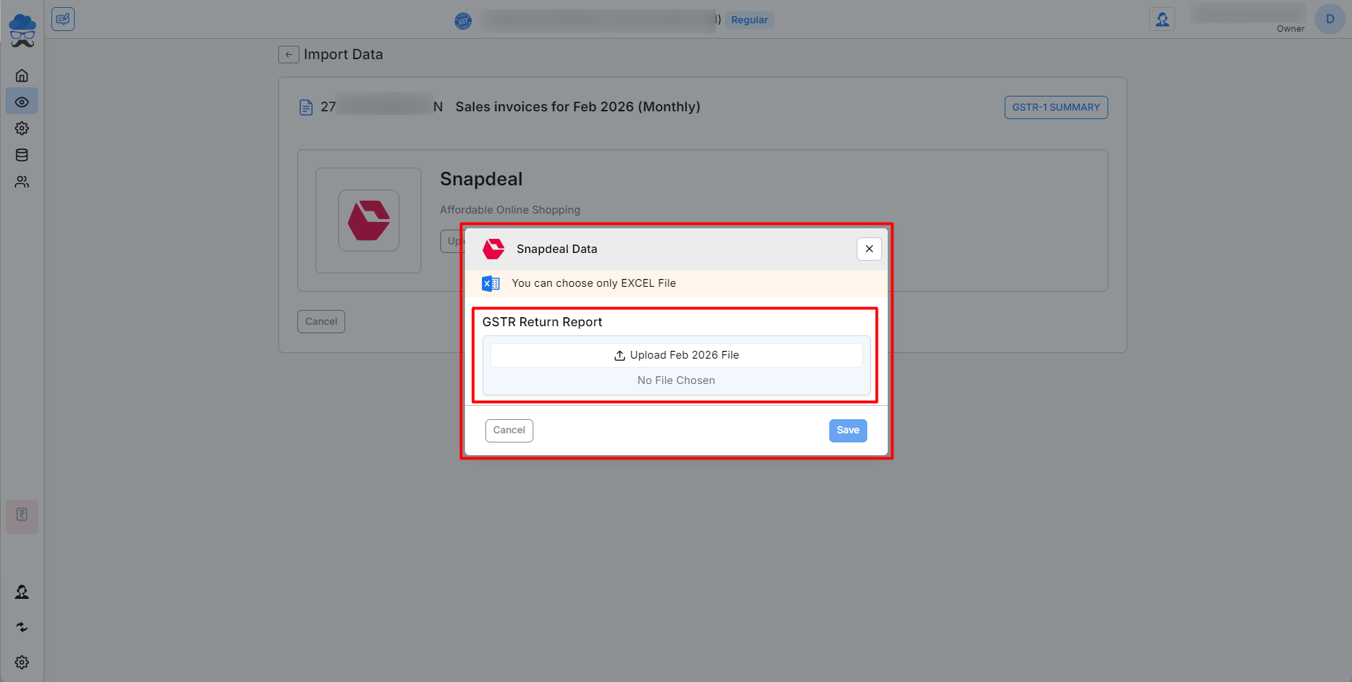 - Navigate to the company Return section, specifically within GSTR-1, and select Import Your Data located in the top right corner.