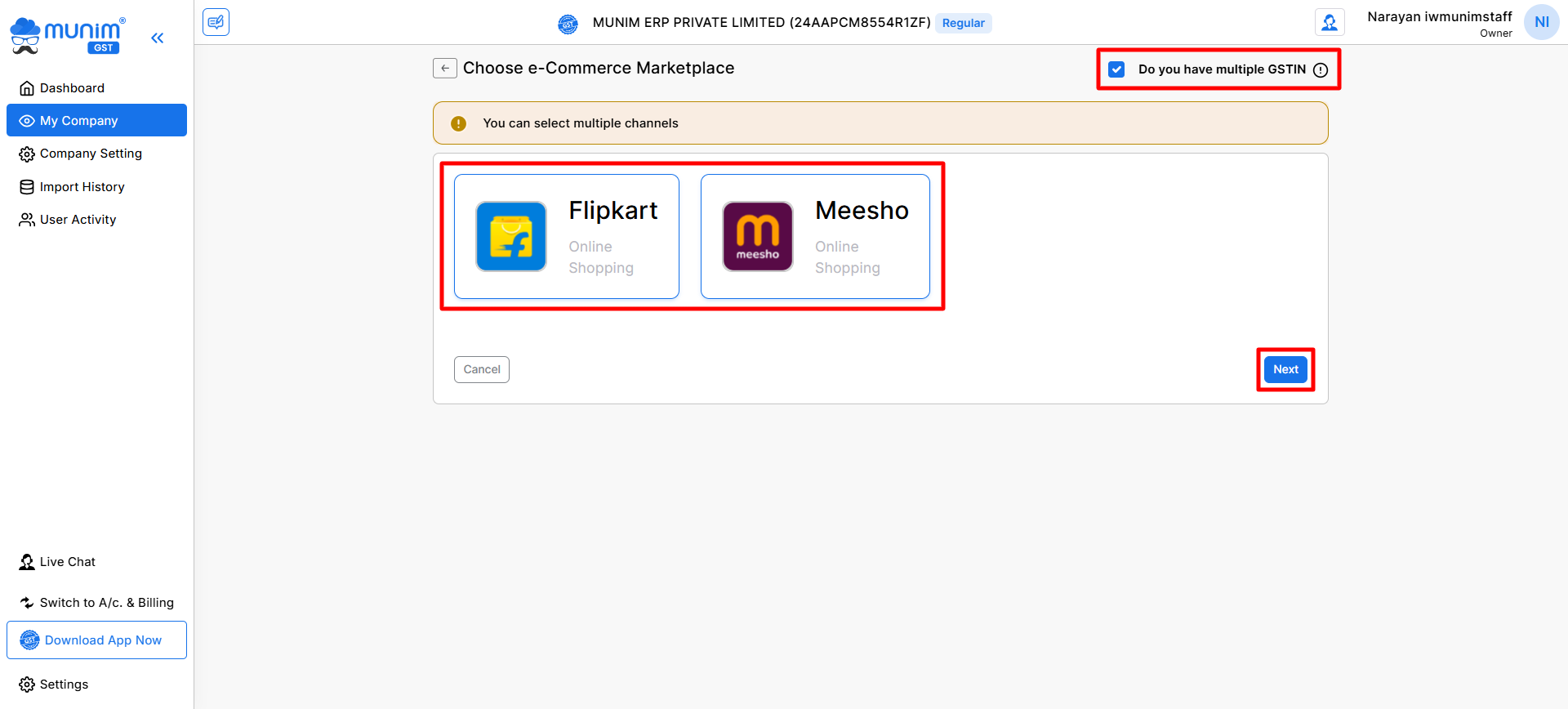 - If your business operates with more than one GSTIN under the same company, enable the option: Do you have multiple GSTIN?