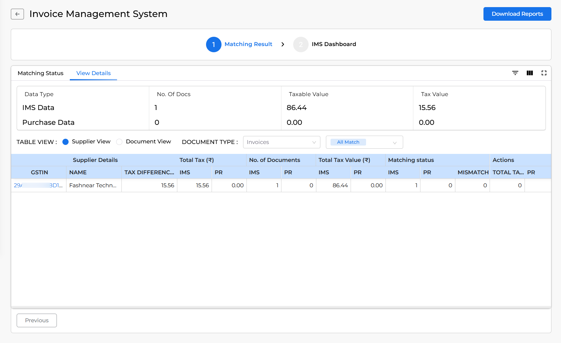 After coming to the “View Details” tab, inspect the data supplier-wise or invoice-wise and compare between IMS Data (from GSTN) and your Purchase Data.