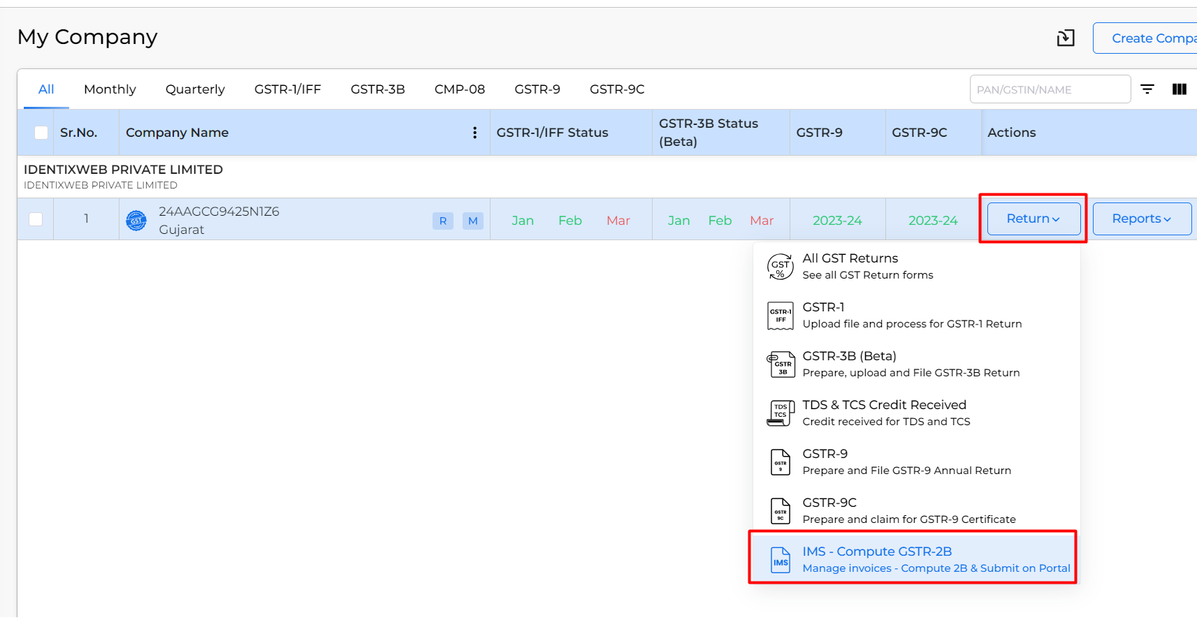 From the dropdown, select “IMS – Compute GSTR-2B”.
