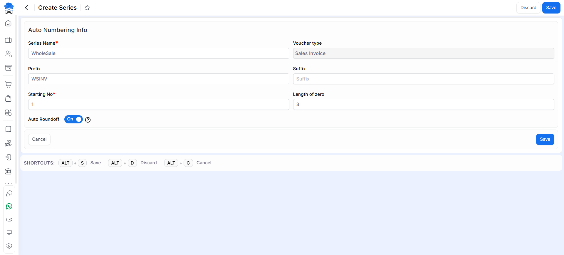 - Complete the necessary fields to create your customized series. This includes choosing a prefix like INV or WINV.