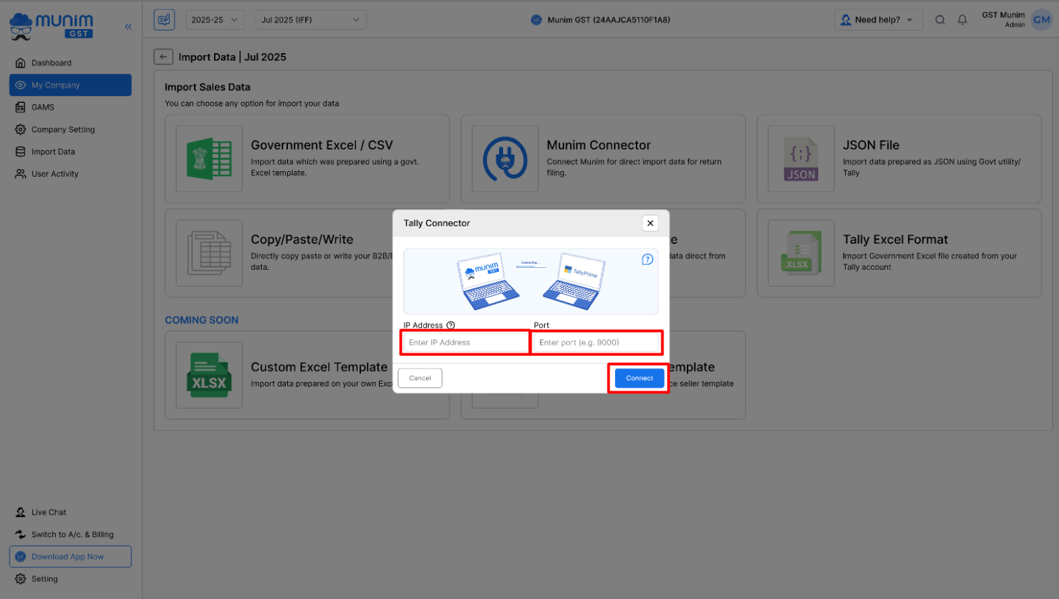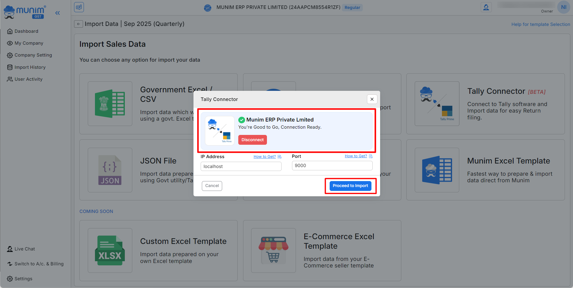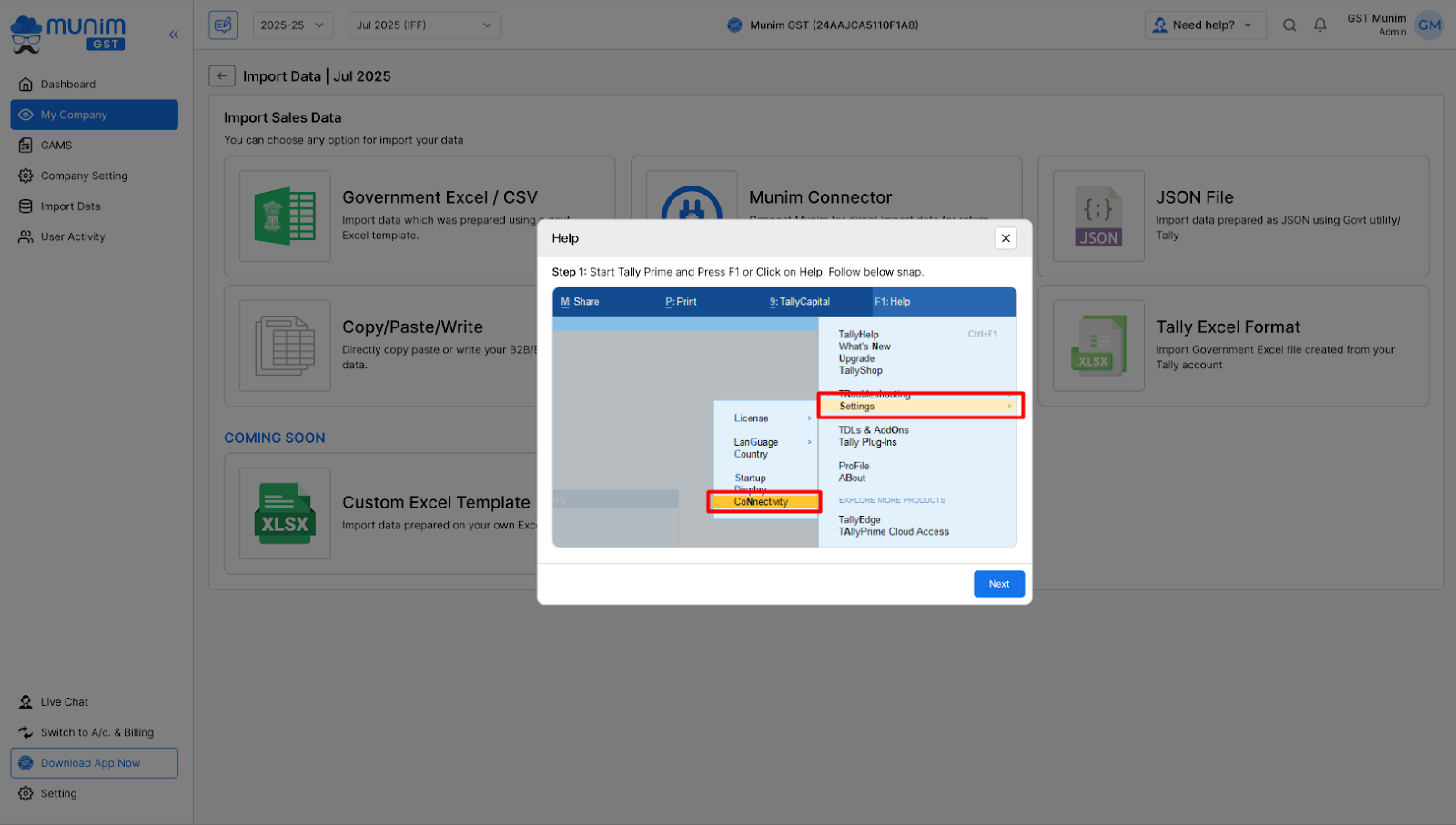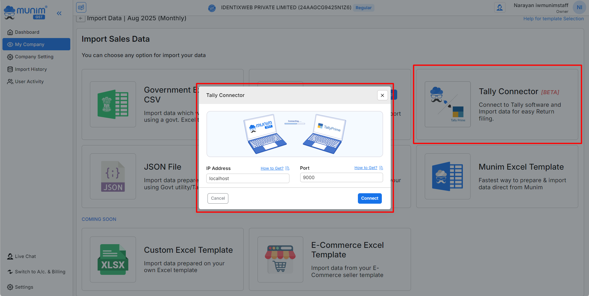 Using the Tally Connector ensures a smooth, error-free transfer of data from Tally Prime to Munim GST, making your return filing process faster and more accurate.