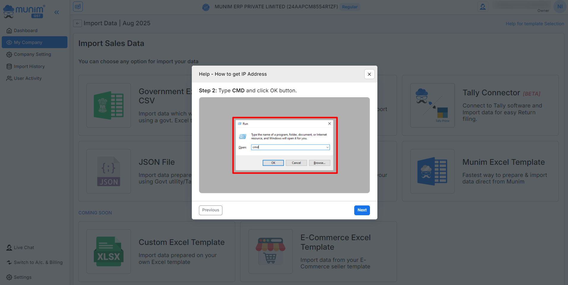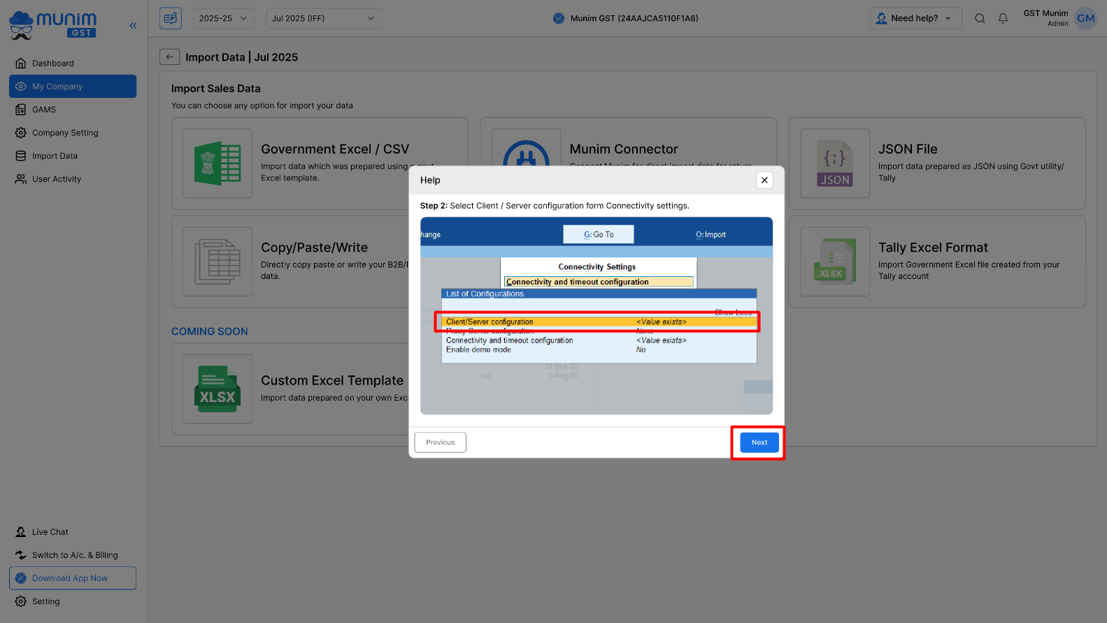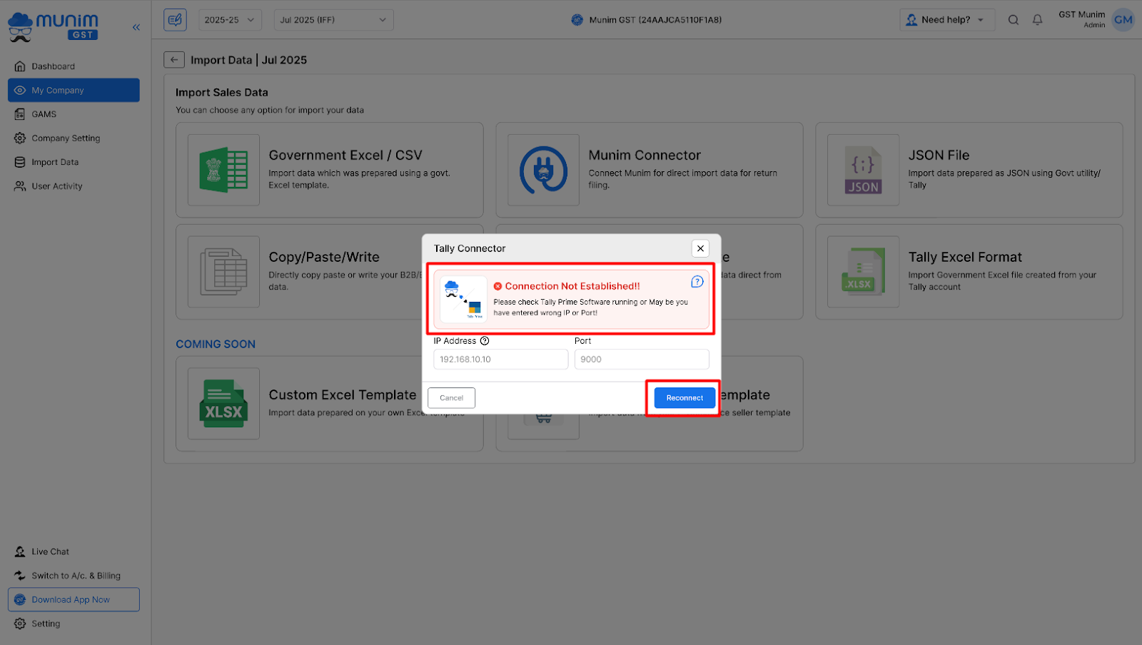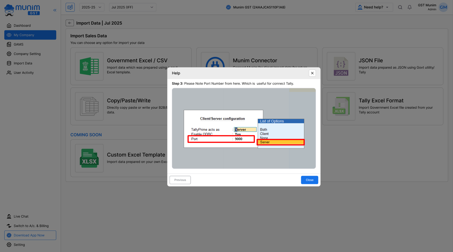 Using the Tally Connector ensures a smooth, error-free transfer of data from Tally Prime to Munim GST, making your return filing process faster and more accurate.