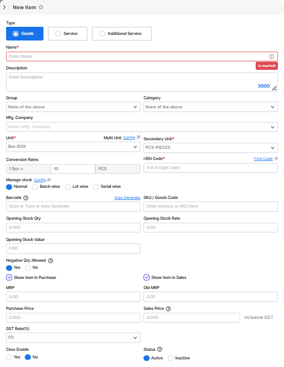 Secondary UnitHere you can add a secondary unit for Item.