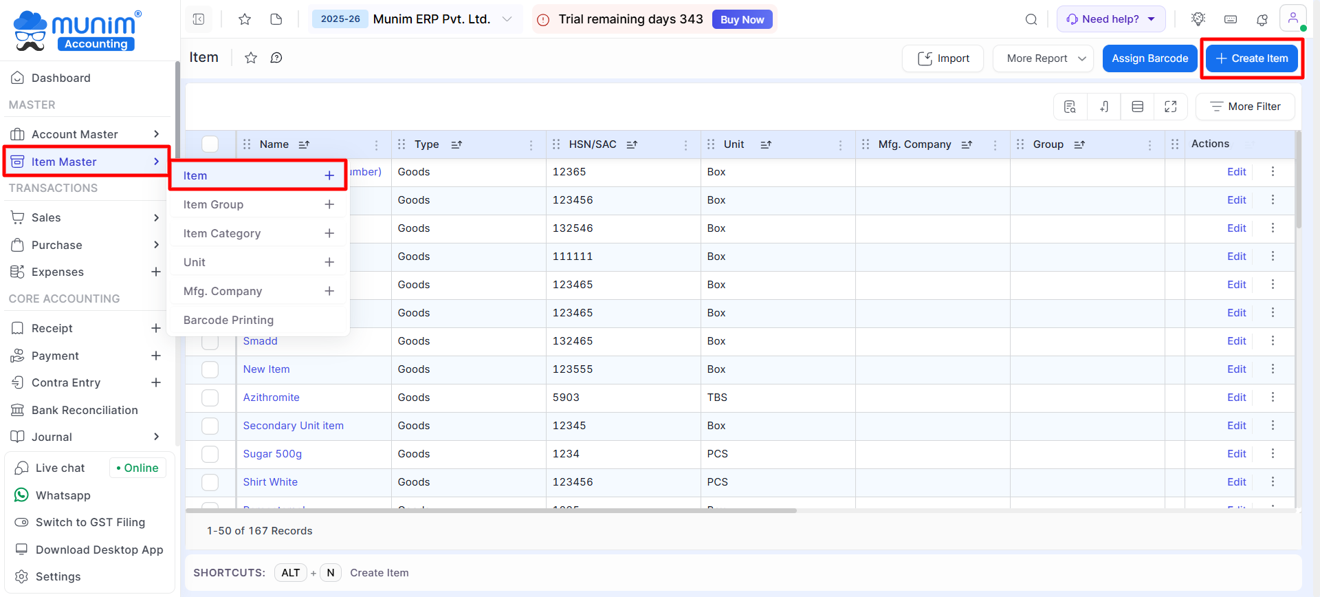 • Go to the left sidebar and select the Item option in the Item Master module.