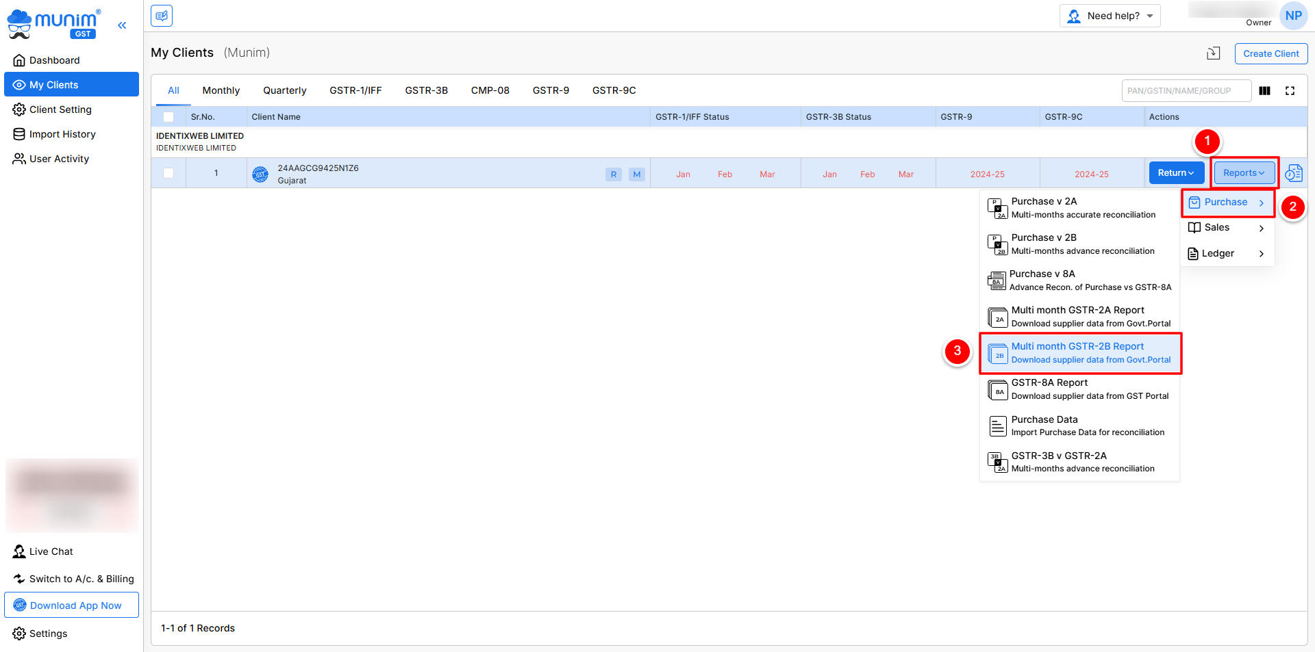 Here are the steps for performing a Multi month GSTR-2B report.