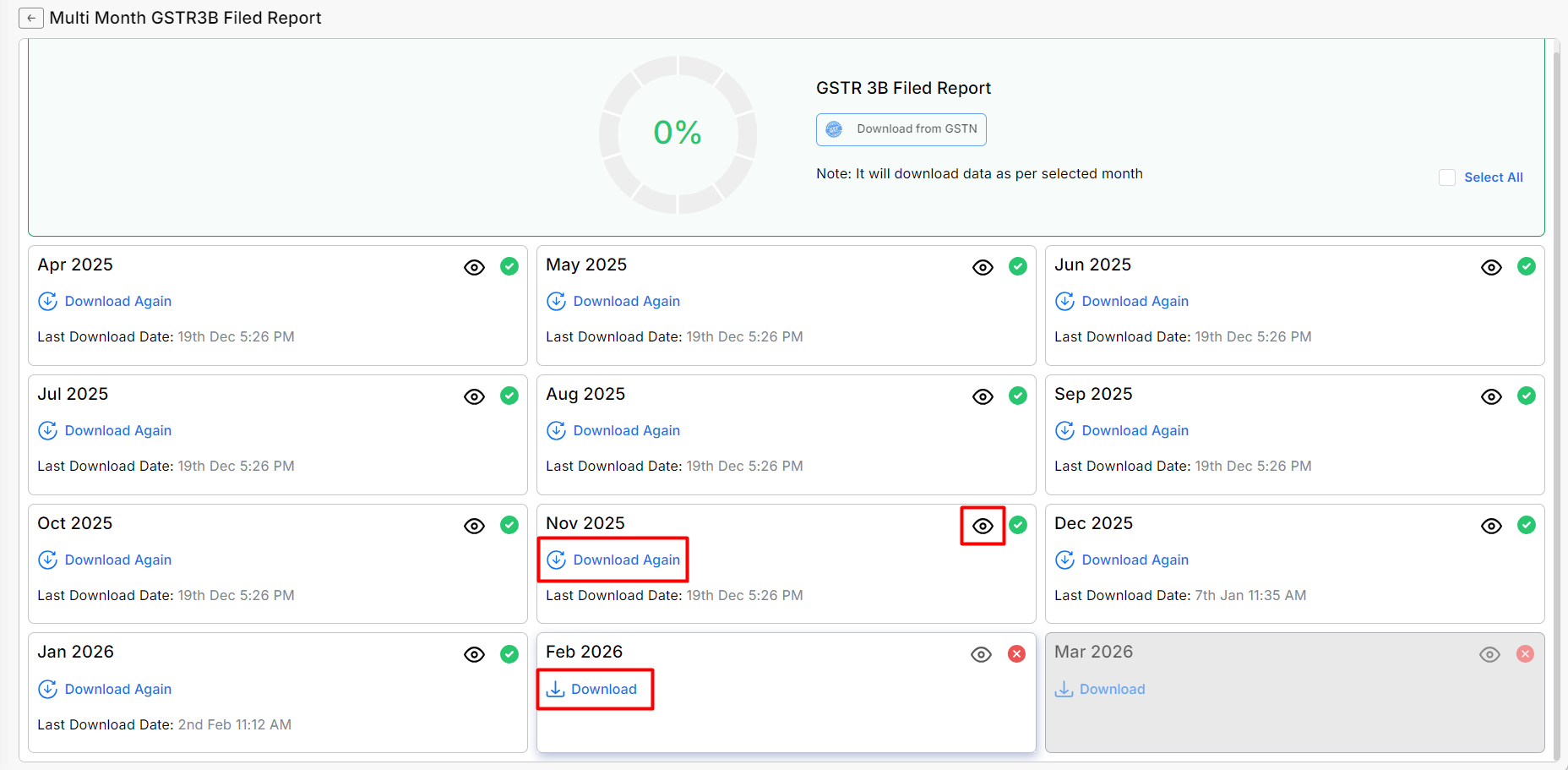 • After successfully downloading your data, you can view it month-wise by clicking on the View icon (👁).
