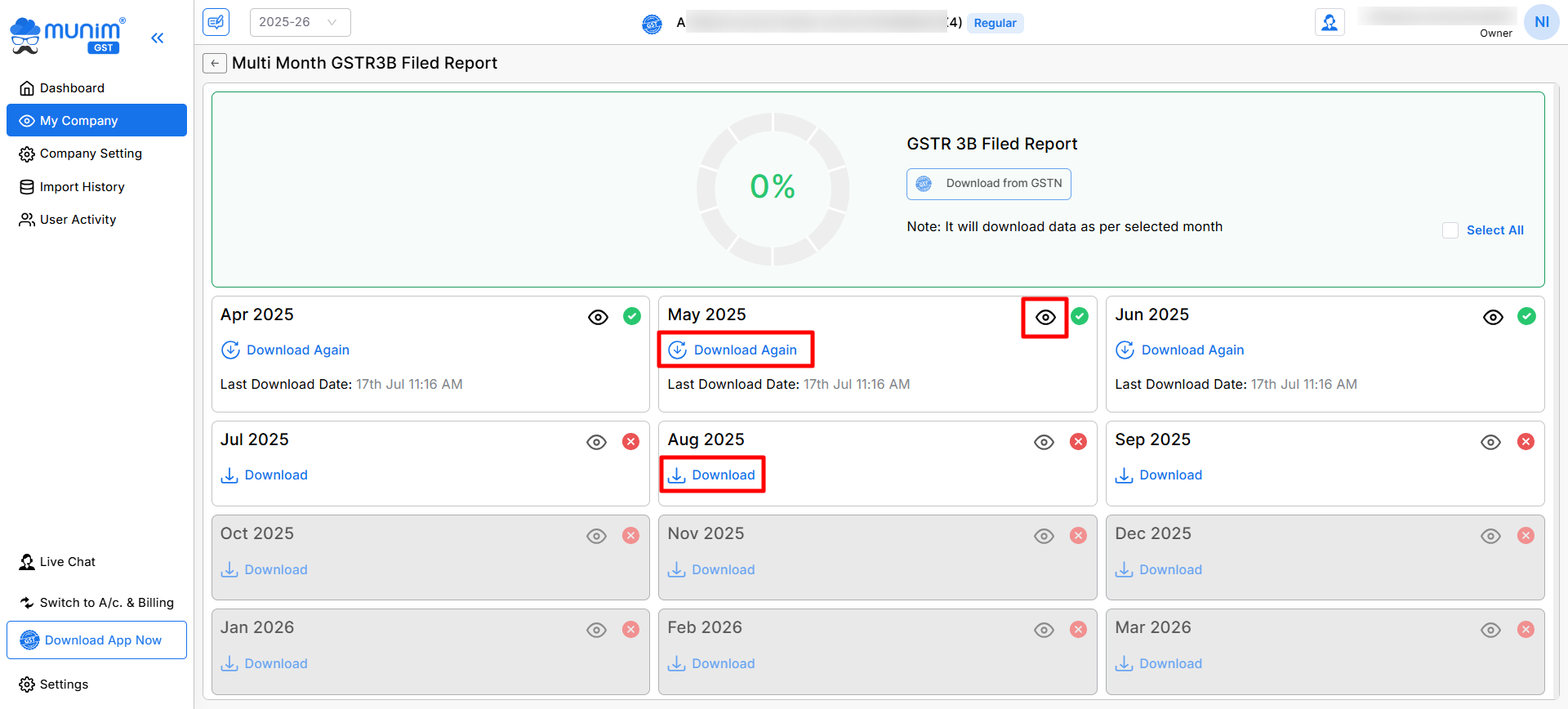 - After successfully downloading your data, you can view it month-wise by clicking on the View icon (👁).