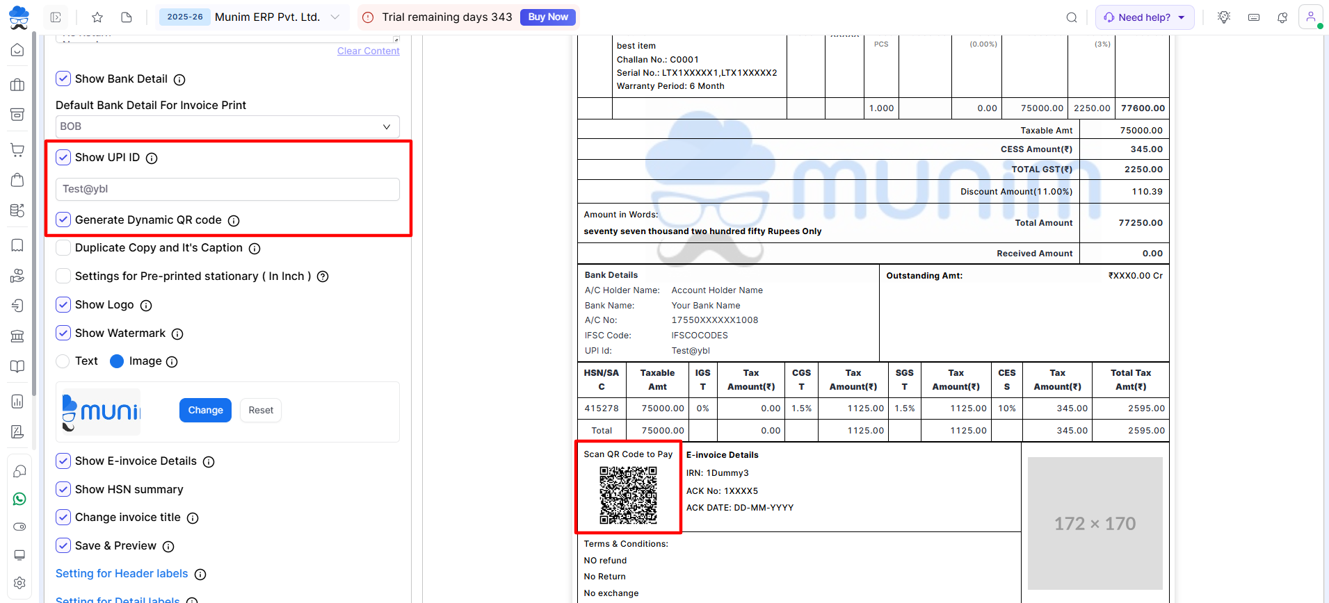 - When the user scans this UPI code, the exact invoice amount will be automatically generated for payment.