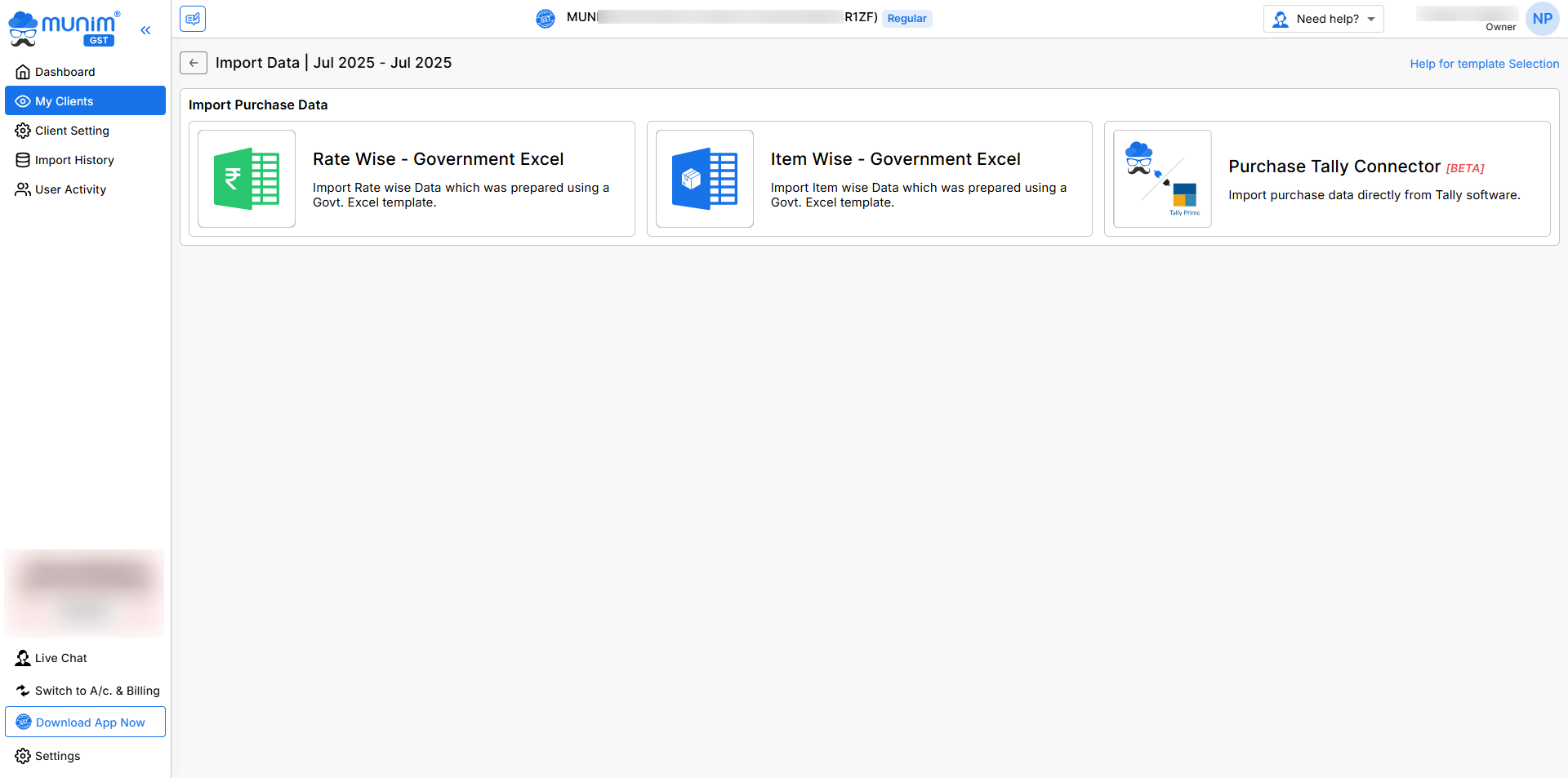 - If you have not uploaded any data, you can select the month period and Import data using two options: Add New Data or Import Your Data.