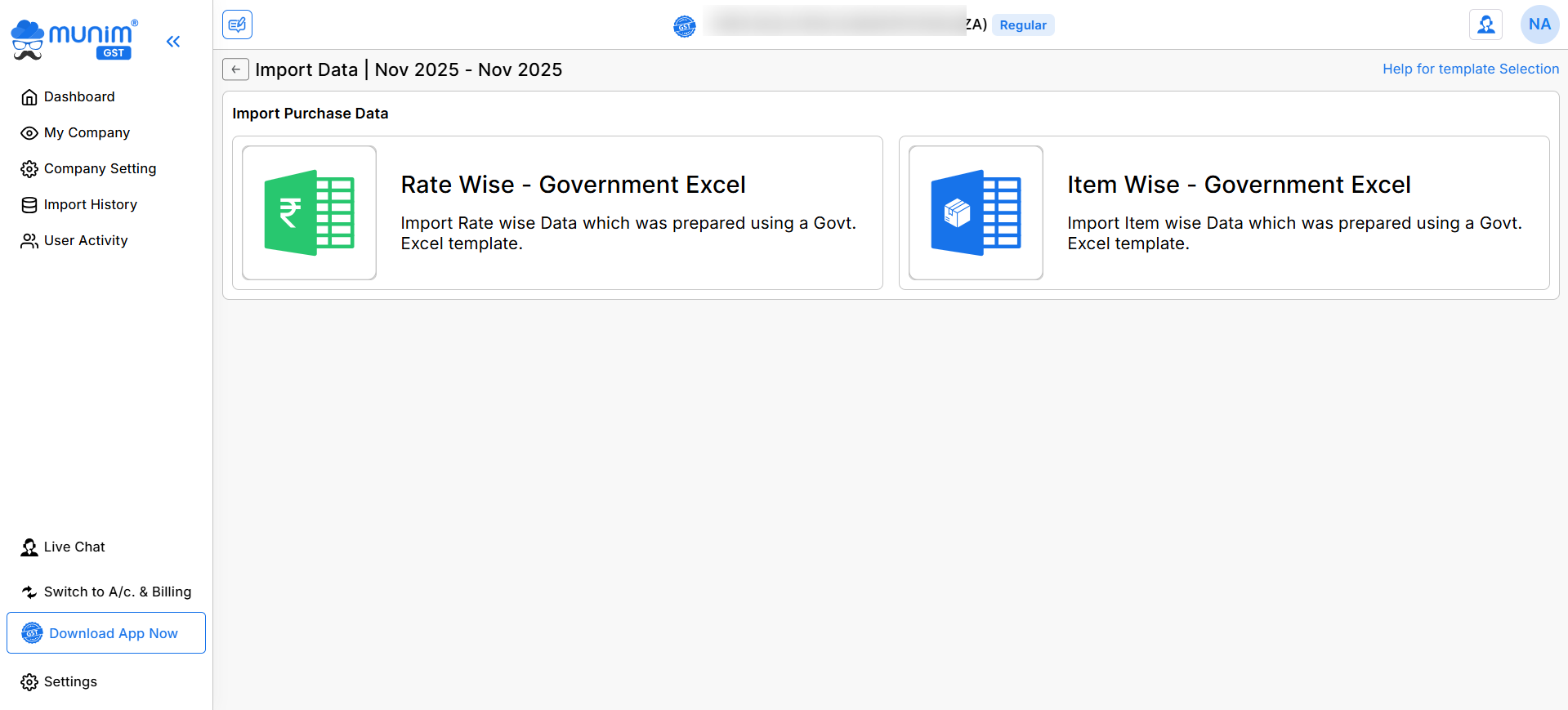- Here on this page, you will get two upload options, Rate wise (Add data with ratewise colums) and Item wise (Add data with Item wise details).