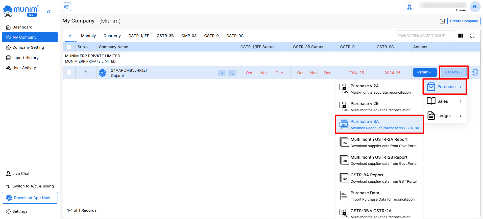 How to Access the Purchase vs GSTR-8A Reconciliation Feature