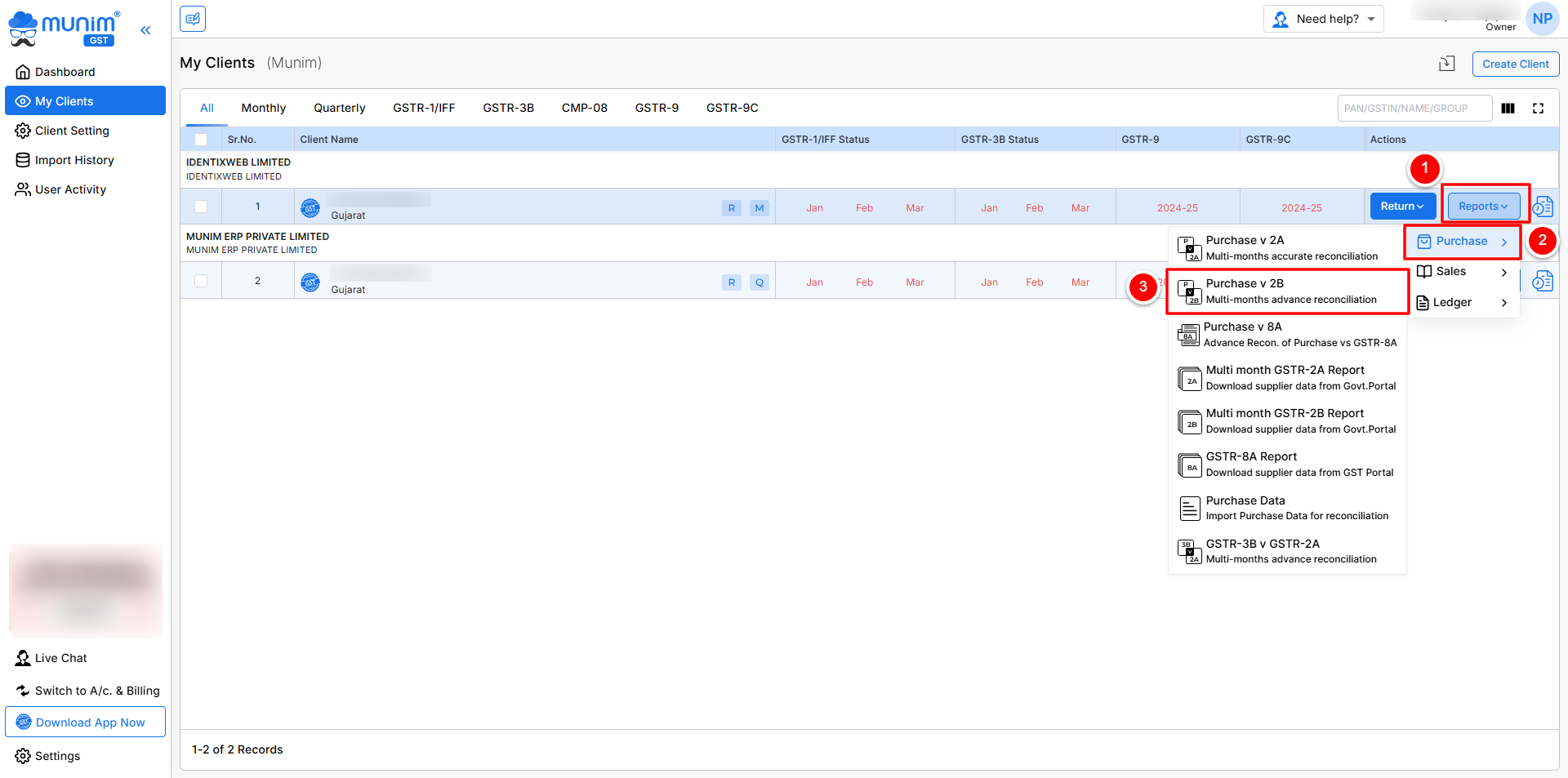 Here are the steps for performing a GSTR-2B Vs Purchase reconciliation.