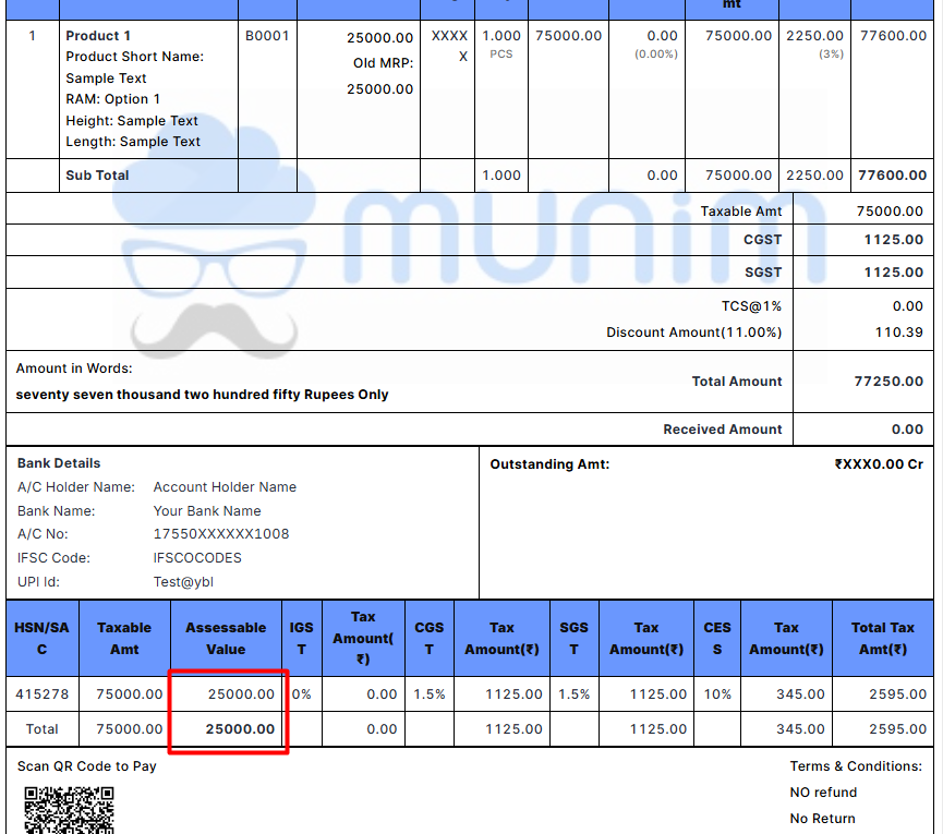- Taxable value is calculated automatically