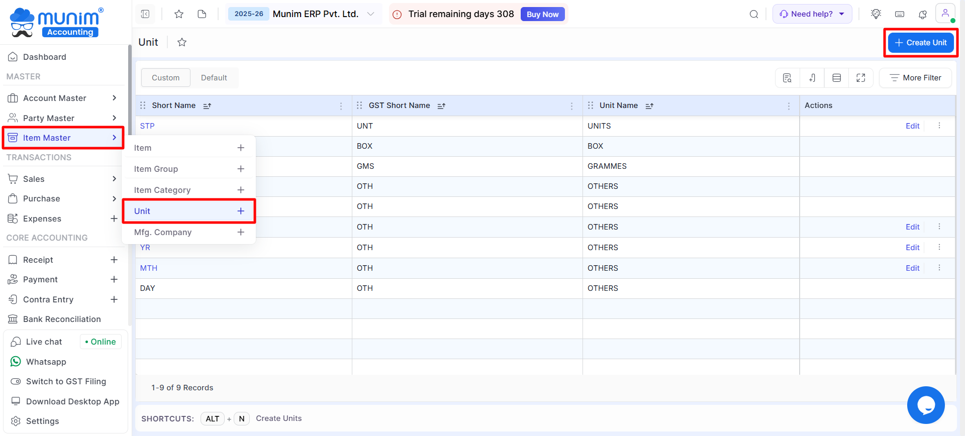 The Unit Module in Munim is a powerful feature designed to manage various measurement units for your inventory and transactions. It provides a seamless way to create, edit, and organize units used across your business operations. Here’s a comprehensive overview of the module to help you get started.